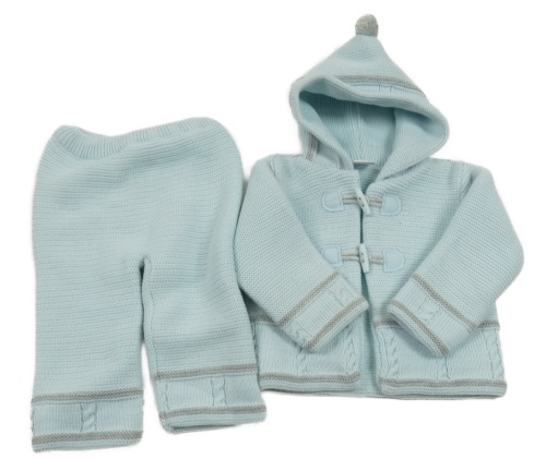 2Set - Světlemodrý pletený propínací zateplený svetr se vzorem a kapucí + kalhoty