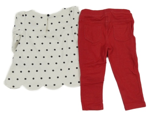2Set - Bílo-černo-vínová puntíkatá tepláková halenka s mašlí + tregíny