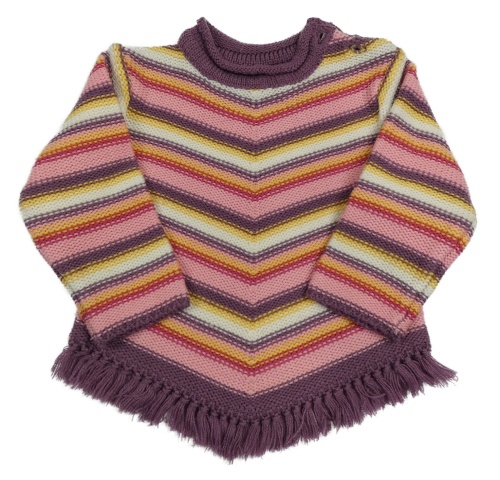 Barevný pruhovaný svetr s třásněmi
