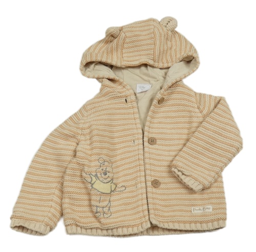 Béžový pruhovaný podšitý propinací svetr s Púem a kapucí Disney
