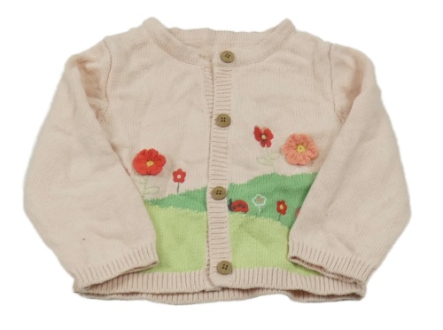 Světelrůžovo-zelený propínací svetr s květinami Nutmeg