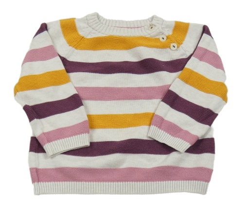 Bílo-růžovo-fialovo-žlutý pruhovaný svetr H&M
