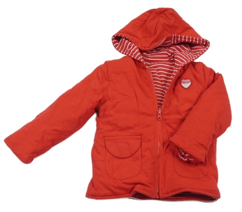Červeno-bílá pruhovaná propínací zateplená mikina s kapucí Liegelind