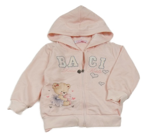 Světlerůžová mikina s medvídkem a kapucí