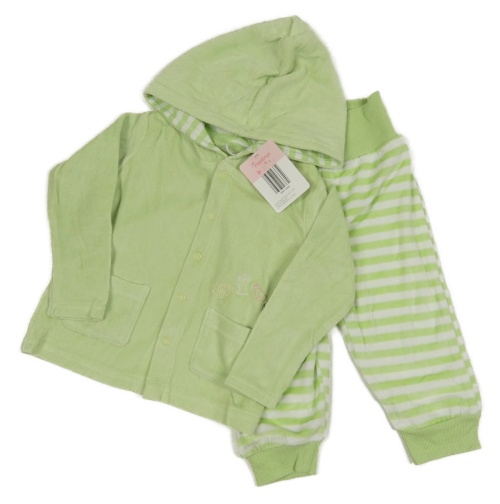 Nové - 2set - Zelenkavá sametová propínací mikina se zvířaty a kapucí + pruhované tepláky Impidimpi