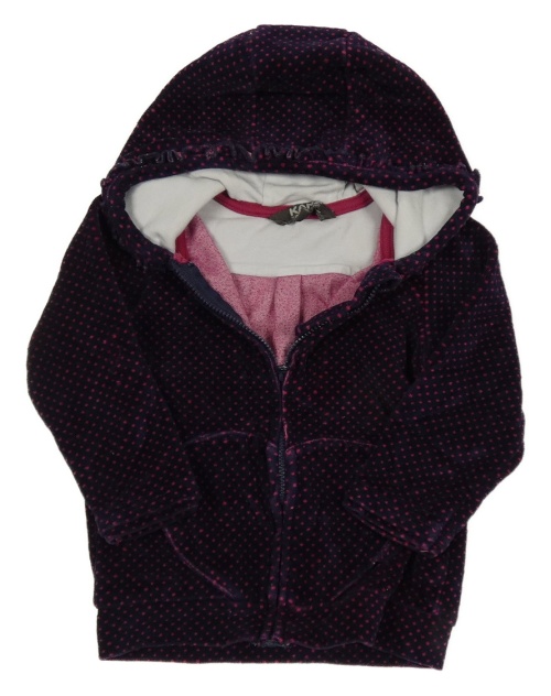 Tmavomodro-růžová puntíkatá sametová propínací mikina s kapucí