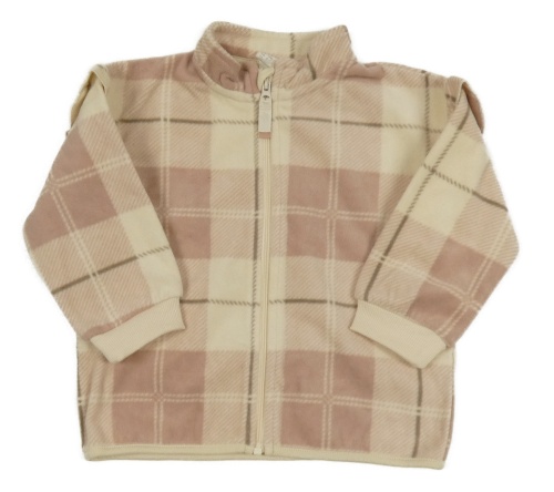 Béžovo-starorůžovo-hnědá kostkovaná fleecová propínací mikina s volánky H&M