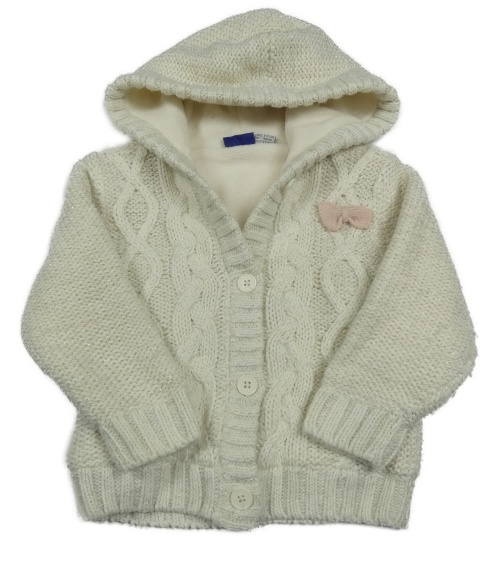 Smetanový třpytivý propínací podšitý svetr s mašlí a kapucí Lupilu
