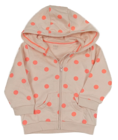 Nové - světlerůžová puntíkatá propínací mikina s kapucí M&S