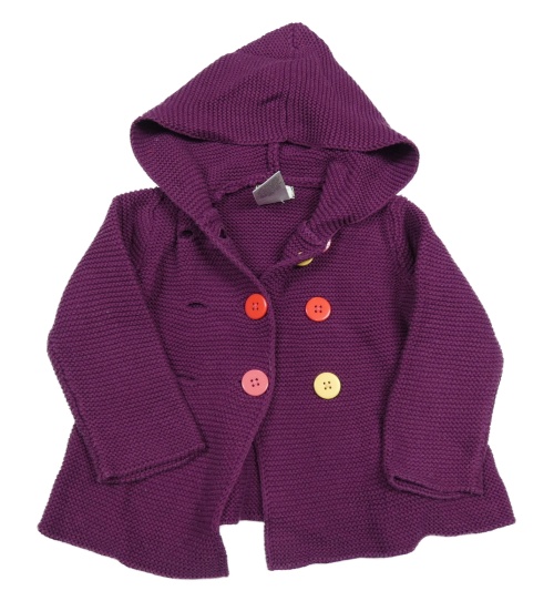 Fialový propínací svetr s kapucí