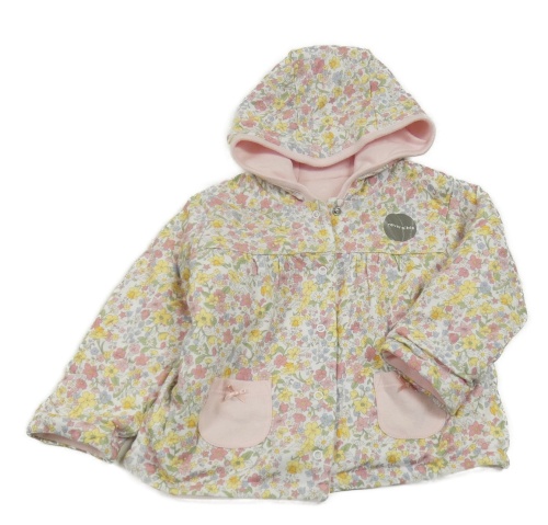 Nové - Bílo-barevná květovaná zateplená propínací oboustranná mikina s kapucí Nutmeg
