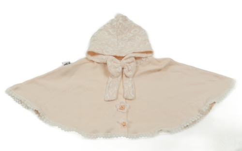 Světlerůžové bavlněné pončo s krajkou a kapucí