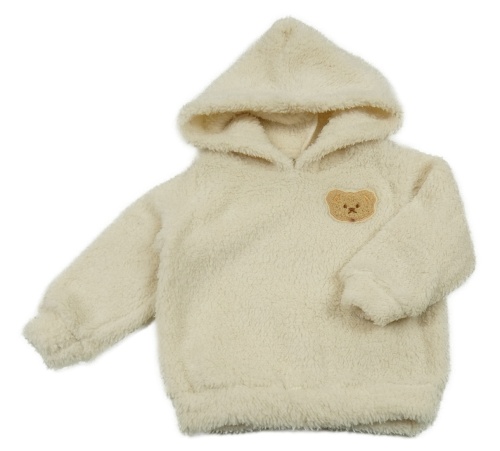 Smetanová huňatá mikina s medvídkem a kapucí