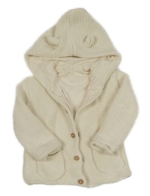 Smetanový propínací podšitý svetr s kapucí s oušky George