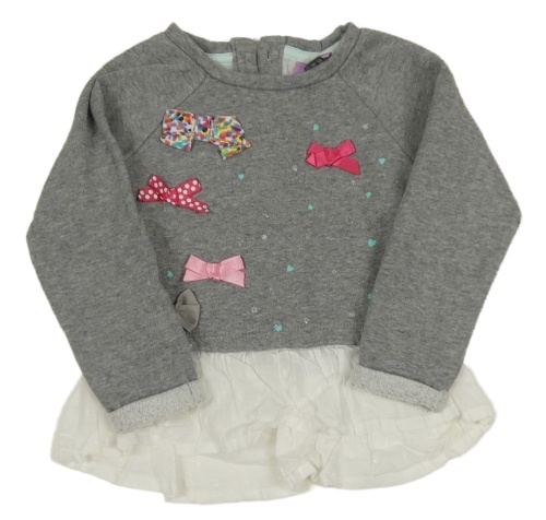 Šedá melírovaná mikina s mašlemi a srdíčky a bílým volánkem s puntíky F&F