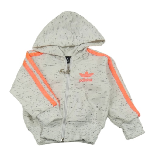 Bílo-šedá melírovaná propínací mikina s neonovými pruhy a kapucí Adidas