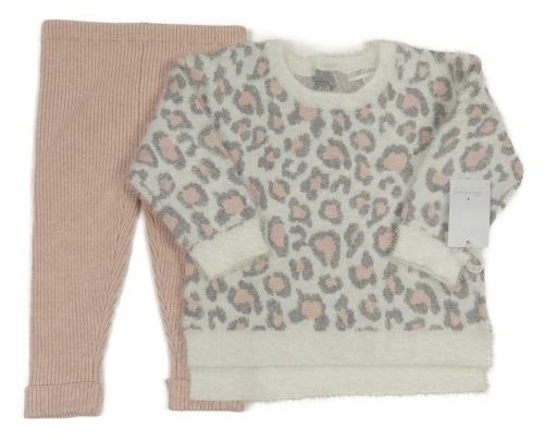Nové - 2 set - Bílo-šedý chlupatý leopardí svetr + růžové kamaše