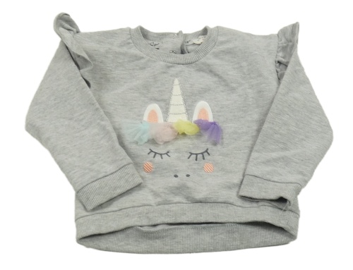 Šedá melírovaná mikina s jednorožcem a volánky