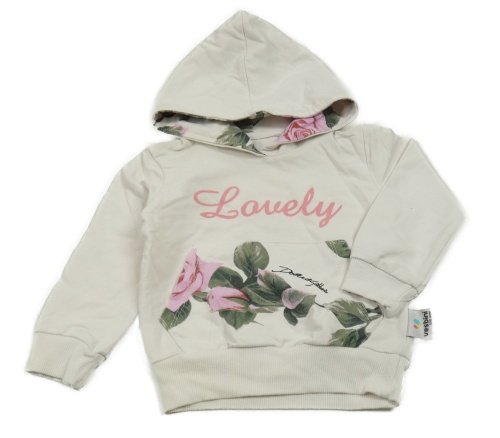 Bílá lehká mikina s lístky a nápisem a kapucí