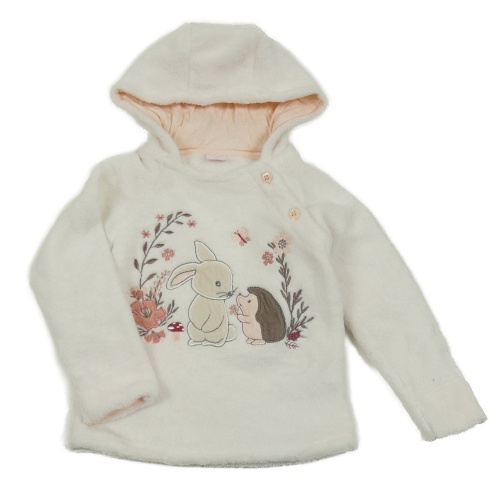 Smetanová chlupatá mikina se zvířaty a kapucí