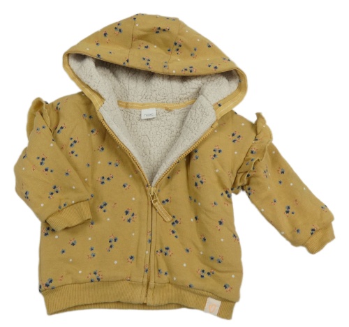 Okrová puntíkatá propínací zateplená mikina s kytičkami a volánky a kapucí Next