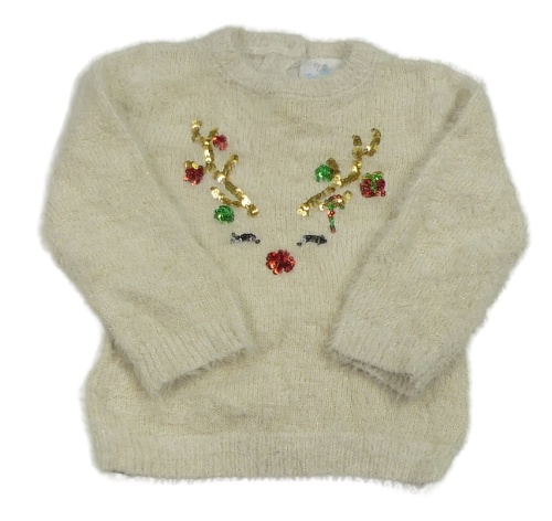 Smetanový třpytivý chlupatý svetr se sobem Topomini