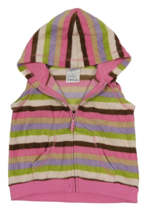 Barevná pruhovaná fleecová propínací vesta s kapucí