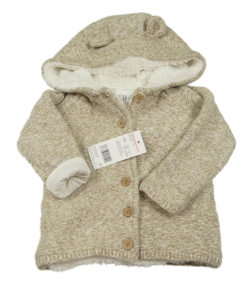 Nový - hnědo-béžovo-bílý melírovaný propínací zateplený svetr s kapucí s oušky F&F
