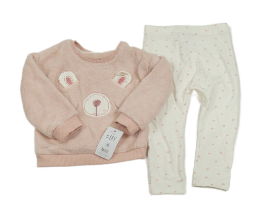 Nové - 2set - světlerůžová chlupatá mikina s medvídkem + bílé legíny George