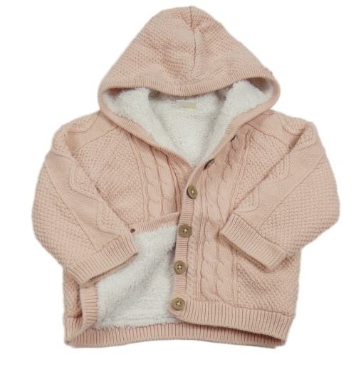 Světlerůžový zateplený propínací svetr s kapucí Next