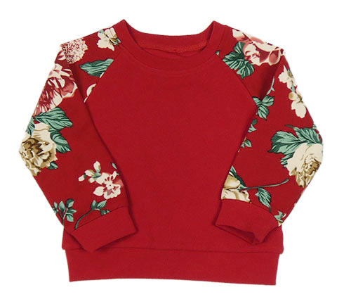 Červená vzorovaná mikina s květovanými rukávy SHEIN