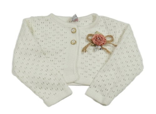 Bílé svetrové bolerko s dirkovaným vzorem a květem Hulsen