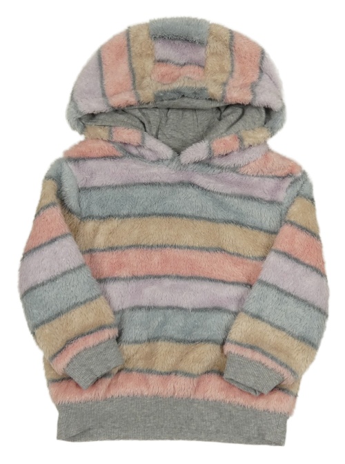 Lila-béžovo-šedo-růžová pruhovaná plyšová třpytivá mikina s kapucí Next
