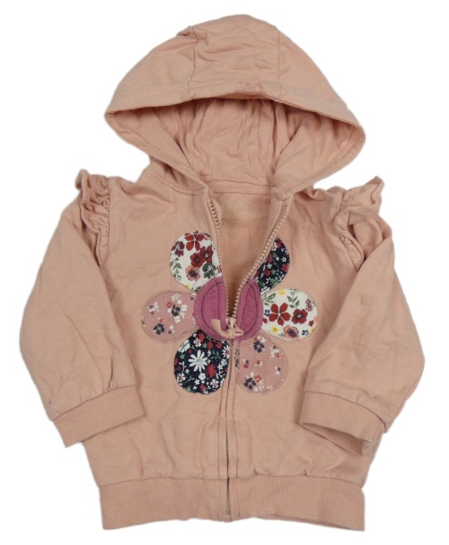 Světlerůžová propínací mikina s kytičkou a kapucí M&Co
