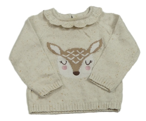 Smetanovo-hnědý melírovaný svetr se srnkou a volánkem Tu