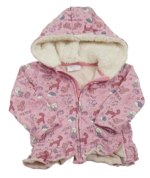Růžová melírovaná propínací teplá mikina se zvířátky a volánkem a kapucí Topomini