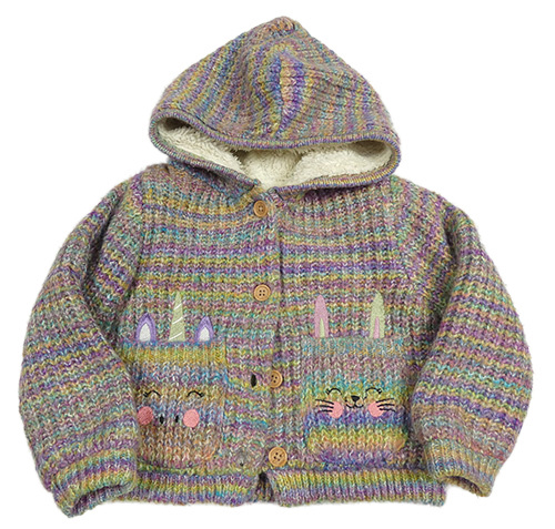 Barevný pruhovaný žebrovaný propínací zateplený svetr s kapucí Nutmeg