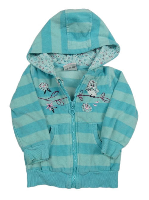 Tyrkysová pruhovaná fleecová propínací mikina se sovou a kapucí Topolino