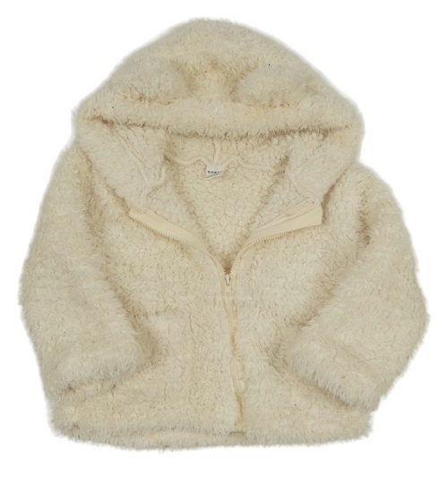 Krémová chlupatá propínací mikina s kapucí s oušky Shein