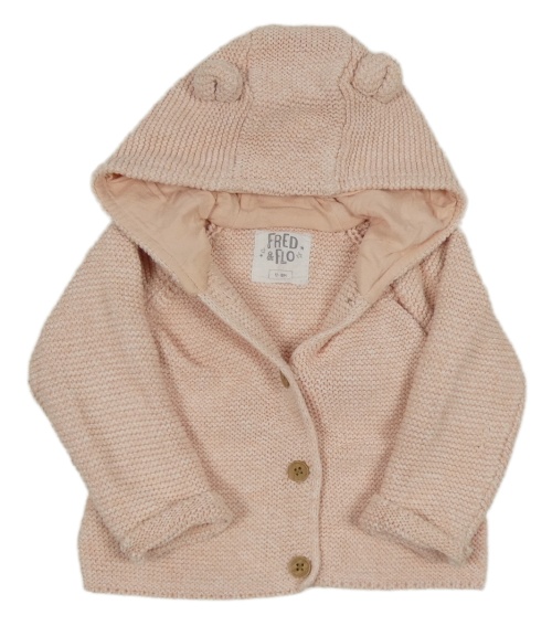 Růžový melírovaný propínací svetr s kapucí s oušky F&F
