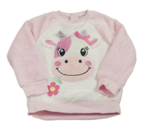 Světlerůžovo-bílá plyšová mikina s kravičkou