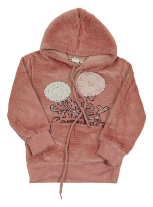 Světlerůžová sametová mikina s nápisem a kapucí