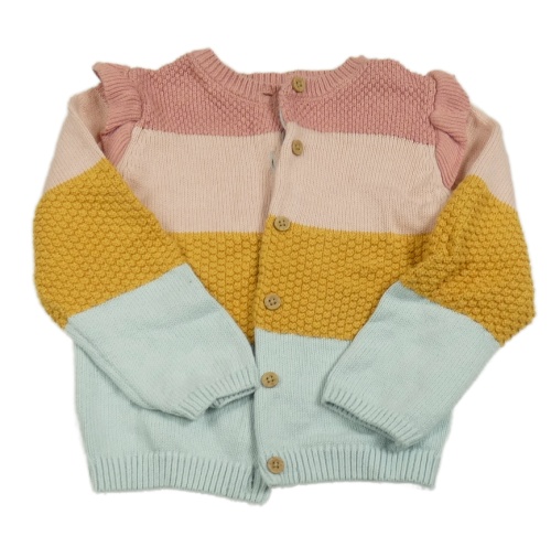Starorůžovo-světlerůžovo-hořčicovo-mátový propínací svetr s volánky F&F