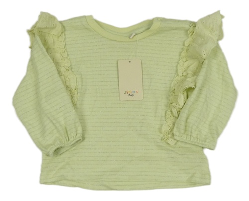 Nové - Světlezelená třpytivá proužkovaná mikina s madeirovými volánky Junior