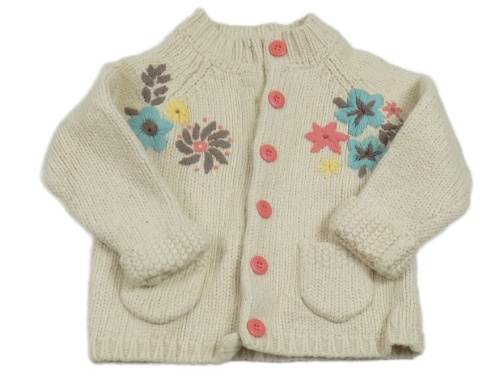 Béžový propínací vlněný svetr s kytičkami John Lewis