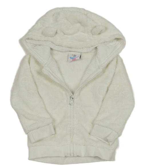 Bílá chlupatá propínací mikina s kapucí Topomini