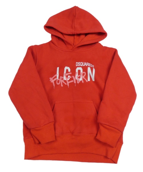 Červená mikina s nápisem a kapucí