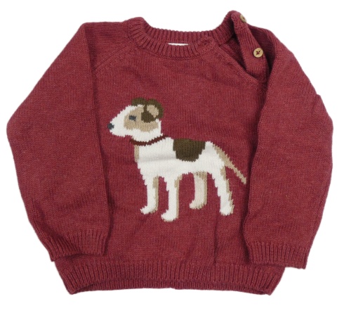 Vínový melírovaný vlněný svetr s pejskem COCONUT