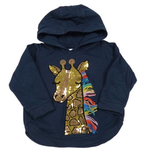 Tmavomodrá mikina se žirafou z flitrů a kapucí