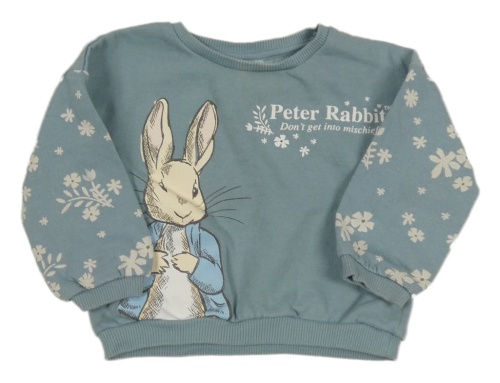 Šedomodrá mikina s květinami a králíkem